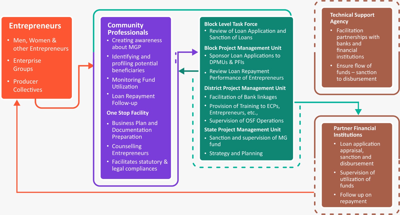 - To address the issues of demand-supply gap in lending to the rural enterprises such as Enterprise Groups, Producer Collectives, First-generation entrepreneurs, Women-led businesses and other enterprises that are perceived as high risk entities by the mainstream finance sector